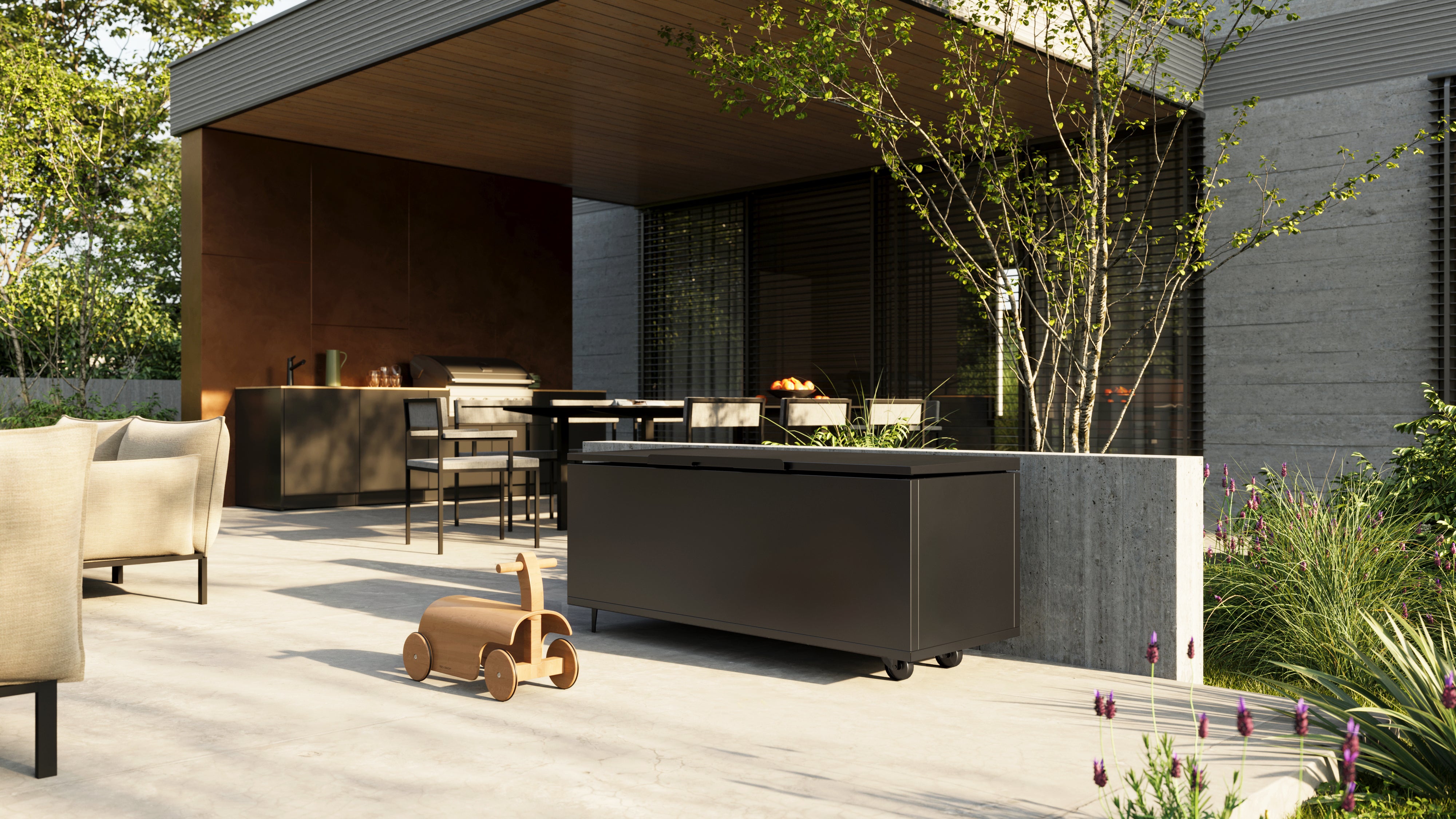 El GardenBOXY proporciona protección contra la lluvia, manteniendo los cojines y asientos secos.