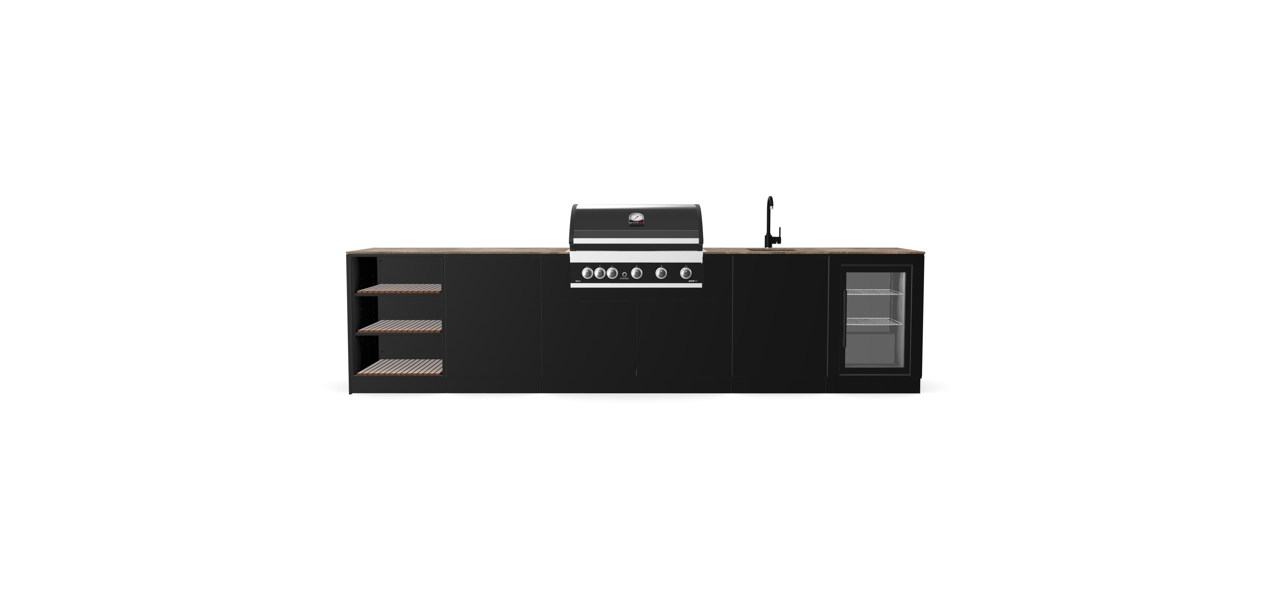 Ak si želáte prispôsobiť farbu, materiály, kuchynské moduly alebo zvoliť iný zabudovaný gril — napríklad Weber, Broil King, BeefEater, Big Green Egg alebo Napoleon — použite náš konfigurátor.